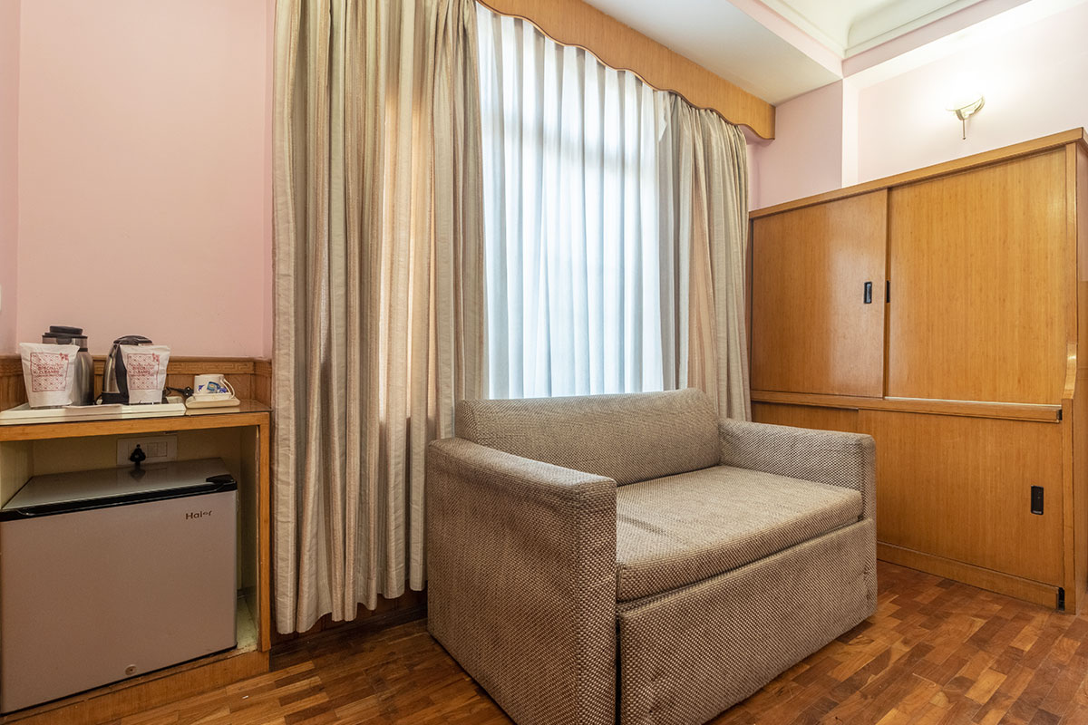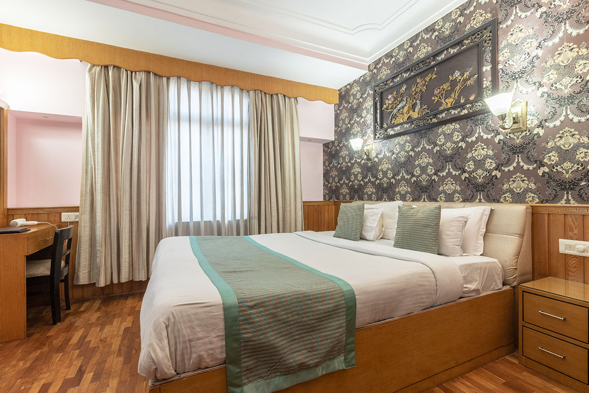 Our Royal Suite Room is equipped with best-in-the-class features and amenities that have been curated to make your stays comfortable and memorable. Whether you are travelling for your business trips or want to experience the warmth of Himalayan hospitality, this room is ideal for all of your staying needs. The room comes with spacious living space, comfortable beds, a private sitting area, a working desk and a wardrobe to keep your belongings along with an attached bathroom. The room is not only designed for your comfort but also to offer you the feel of luxury stays overlooking the panoramic views of the Himalayan vistas.